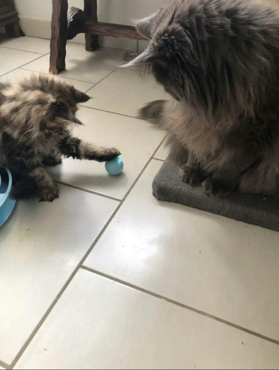 3. Ihr Haustier folgt ihm, schiebt ihn und spielt damit, während es aktiv und unterhalten bleibt.